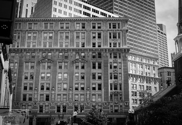 Some where in Boston It was early afternoon when I took this and what I like is the different buildings that look like they over lap each other mixed with small elements of history.